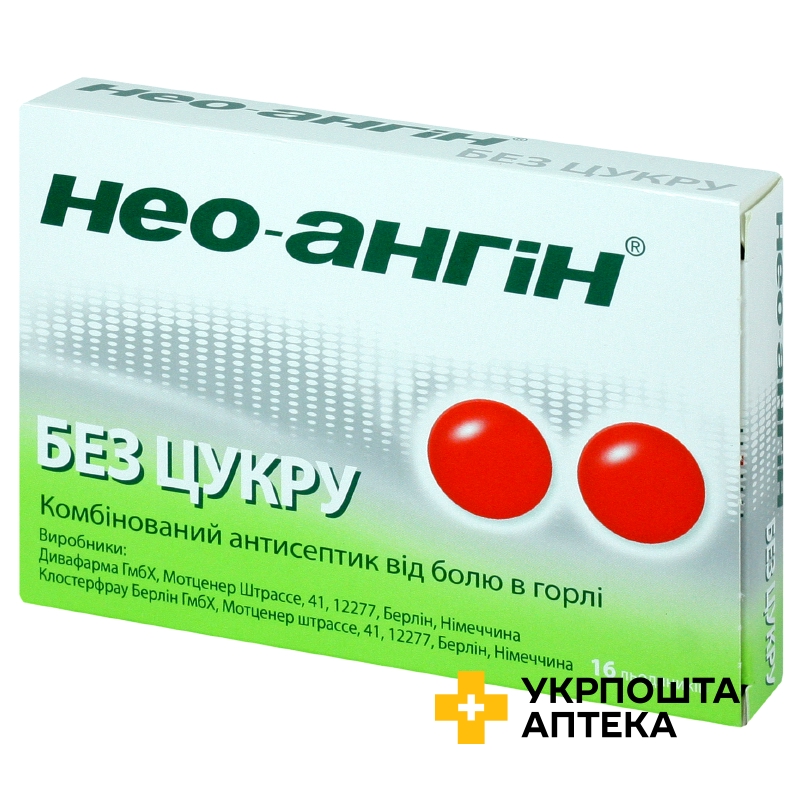 Нео-ангін без цукру льодяники без цукру №16 Divapharma (Німеччина)
