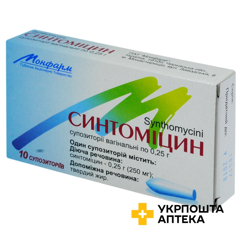 Синтоміцин супп. вагінал. 0,25 г №10 Монфарм (Україна)