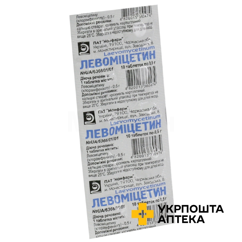 Левоміцетин табл. 0,5 г №10 Монфарм (Україна)