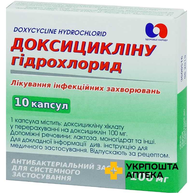 Доксициклін капс. 100 мг №10 Здоров'я народу (Україна)