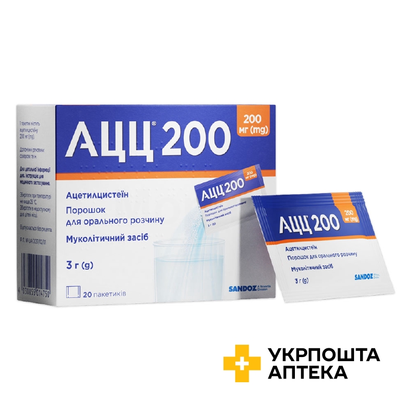 Ацц пор. д/орал. р-ну 200 мг 3.г №20 Салютас Фарма (Німеччина)