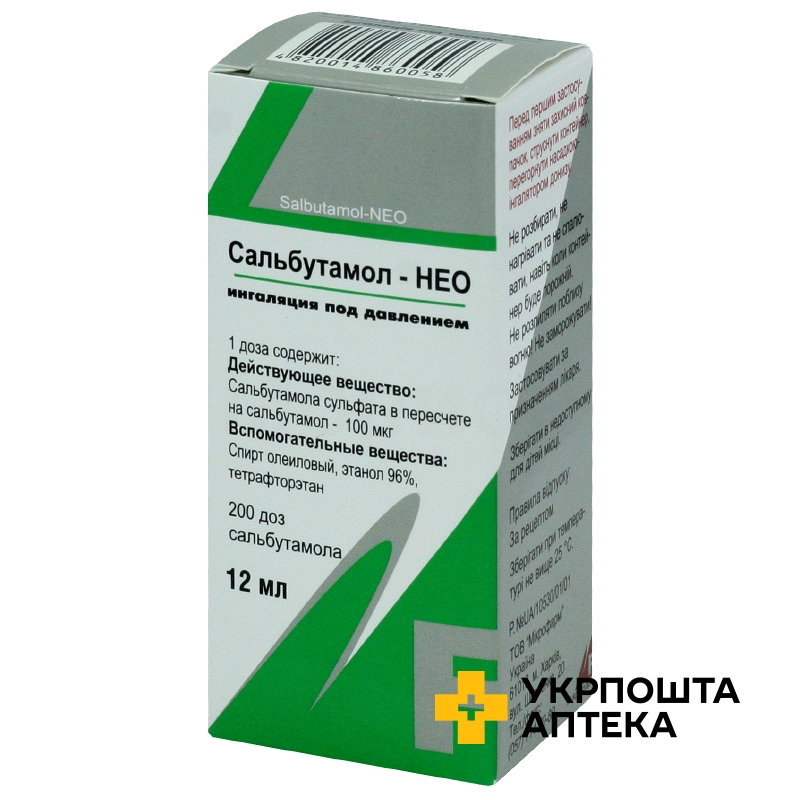 Сальбутамол нео аерозоль д/інг. 100 мкг/доза 200.доз Мікрофарм (Україна)