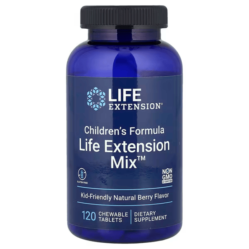 Опис Натуральний ягідний аромат, який подобається дітям Не містить глютену Сертифікат Non GMO LE Certified Харчова добавка Дитяча таблетка з ягідним смаком, що легко жується, містить інгредієнти Life Extension Mix™ у кількостях, що підходять для дітей віком 4 років і більше. Кожна таблетка містить 18 основних вітамінів та мінералів, включаючи вітаміни A, C та D. Продукт задовольняє щоденні потреби дітей у харчуванні та закладає основу для здоров'я у дорослому віці. Переваги добавки Life Extension Mix™ для дітей Забезпечує збалансоване харчування за рахунок щоденного прийому мультиелементних добавок Підтримує здорове зростання та розвиток дитини Має приємний ягідний смак і не містить доданої сахарози У дитинстві закладається основа здоров'я протягом усього життя Збалансоване харчування є необхідною умовою для здорового зростання та розвитку дітей. Тим не менш, через щільний графік батьків, вживання фаст-фуду і напівфабрикатів діти можуть не отримувати добові норми поживних речовин, що рекомендуються щодня. Підтримка здорового зростання Добавка для дітей Life Extension Mix™ містить поживні речовини із запатентованої суміші в кількостях, які підходять для дітей віком від 4 років і більше. Якою б гарною не була добавка, важливо, щоб вона сподобалася дитині. Батьки знають, що діти вибирають продукти до смаку, а не за корисністю. Дитяча добавка Life Extension Mix™ має приємний натуральний ягідний смак і тепер не містить сахарози. Рекомендації щодо застосування Перед застосуванням уважно вивчіть інформацію на етикетці та суворо дотримуйтесь рекомендацій. Для дітей від 4 до 8 років: приймати по дві (2) жувальні таблетки щодня під час їжі або за призначенням лікаря. Перед прийомом цього продукту дітьми віком до 4 років необхідно проконсультуватися з лікарем.